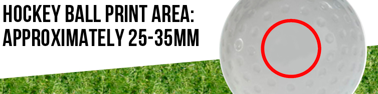 Print size for printed hockey balls: The print area is approximately 25-35mm, depending on the print process and the layout of your design. Circular and square logos including photographs can be printed to 25mm and rectangles and text can be printed slightly larger at a maximum of 35mm.